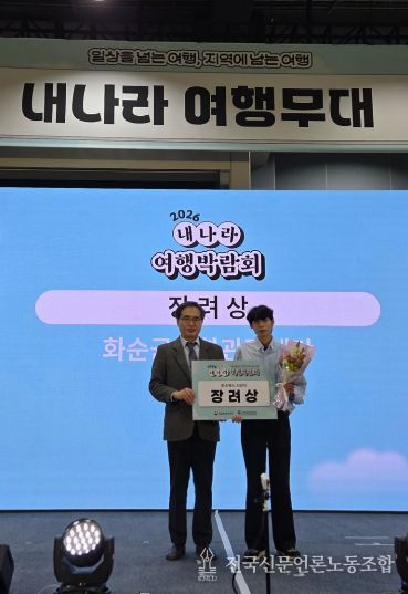 전국신문언론노동조합 강찬희 기자 | (재)화순군문화관광재단(이사장 구복규)은 지난 3월 19일부터 22일까지 서울 코엑스 마곡 전시장에서 열린 '2026 내나라 여행박람회'에서 우수부스로 선정돼 장려상을 수상했다고 밝혔다.