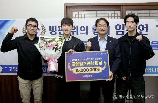 전국신문언론노동조합 김성길 기자 | 고양특례시는 캐나다 몬트리올에서 열린 ‘2026 ISU 세계 쇼트트랙 선수권대회’에서 개인전 2관왕을 달성하며 세계 최정상의 기량을 입증한 빙상팀 임종언 선수를 지난 23일 초청해 격려 오찬·간담회를 진행했다.