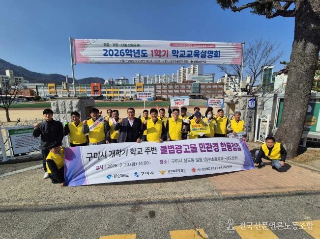 전국신문언론노동조합 강찬희 기자 | 구미시는 개학기를 맞아 (사)경북옥외광고협회 구미시지부(지부장 정원표)와 함께 초등학교 주변 불법광고물에 대한 일제 정비에 나섰다. 학생들의 안전한 통학환경을 확보하고 도시 경관을 개선하기 위한 조치다.