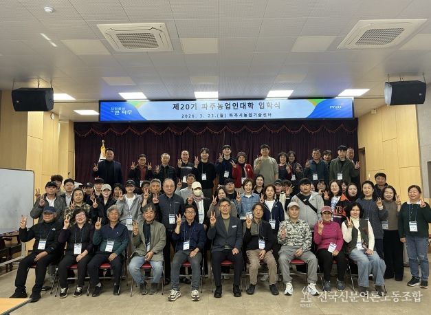전국신문언론노동조합 김성길 기자 | 파주시는 지난 23일 파주시농업기술센터에서 신입생과 관계자 등 70여 명이 참석한 가운데, 미래 농업을 이끌어갈 정예 인재들의 힘찬 출발을 알리는 '2026년 파주농업인대학 입학식’을 개최했다.
