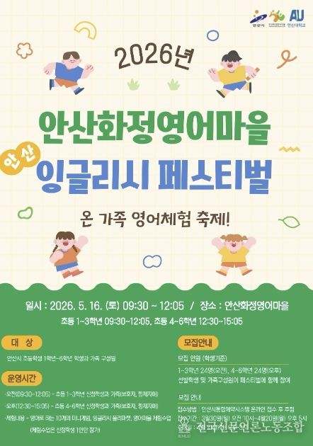 전국신문언론노동조합 김성길 기자 | 안산시가 설립하고 안산대학교가 운영하는 안산화정영어마을은 ‘온 가족 영어체험 축제!’를 주제로 ‘안산 잉글리시 페스티벌’을 운영한다고 24일 밝혔다.
