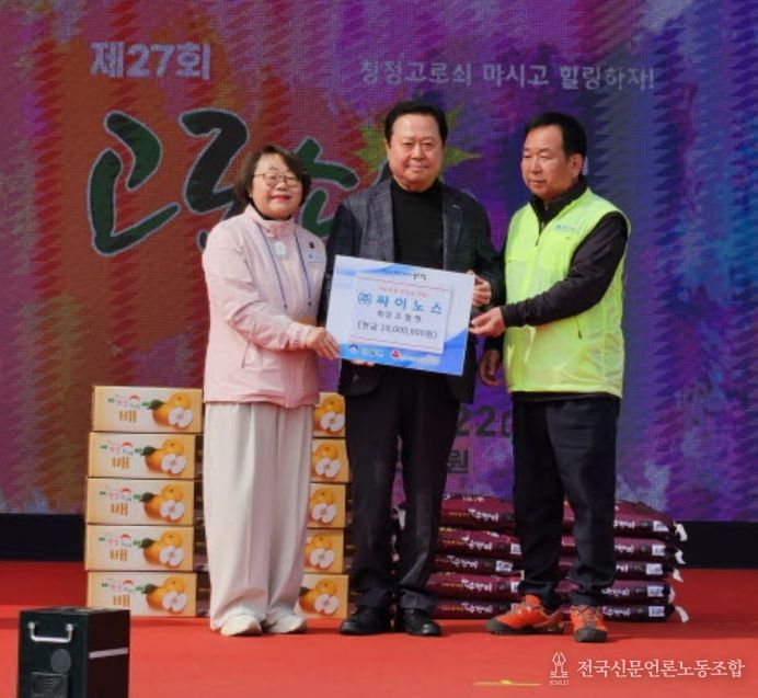 전국신문언론노동조합 김성길 기자 | 양평군 단월면은 지난 21일과 22일, 축제 기간 중 단월레포츠공원에서 열린 기념행사에서 ㈜싸이노스 조철형 회장이 이웃돕기 성금 1,000만 원을 전달했다고 밝혔다.