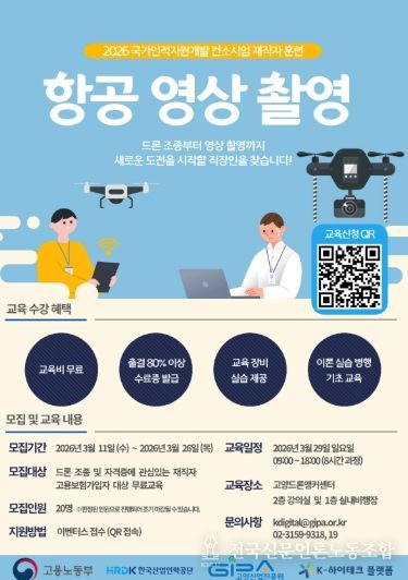 전국신문언론노동조합 강찬희 기자 | 고양산업진흥원 K-하이테크 플랫폼 지원단이 재직자 대상 ‘일일 드론 항공영상 촬영과정’교육생을 모집한다.