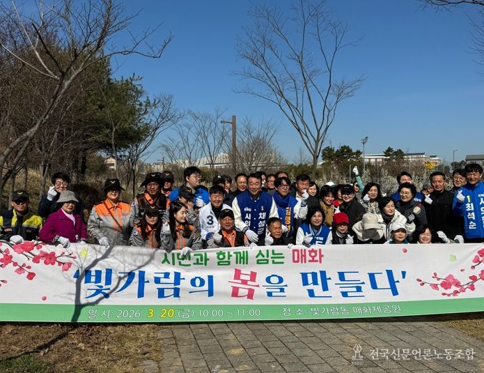 전국신문언론노동조합 강찬희 기자 | 전남 나주시가 시민과 함께 매화나무를 식재하며 빛가람동 매화제공원을 봄꽃 명소로 가꾸는 경관 개선에 나섰다.