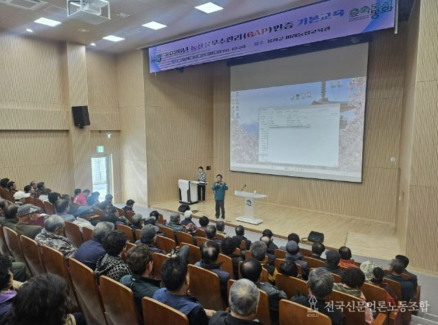 전국신문언론노동조합 강찬희 기자 | 봉화군은 안전한 농산물 생산에 주력하기 위해 지난 23일 신규농가 및 갱신농가 400여 명을 대상으로 미래농업교육관에서 GAP(농산물우수관리) 인증 기본 교육을 실시했다.