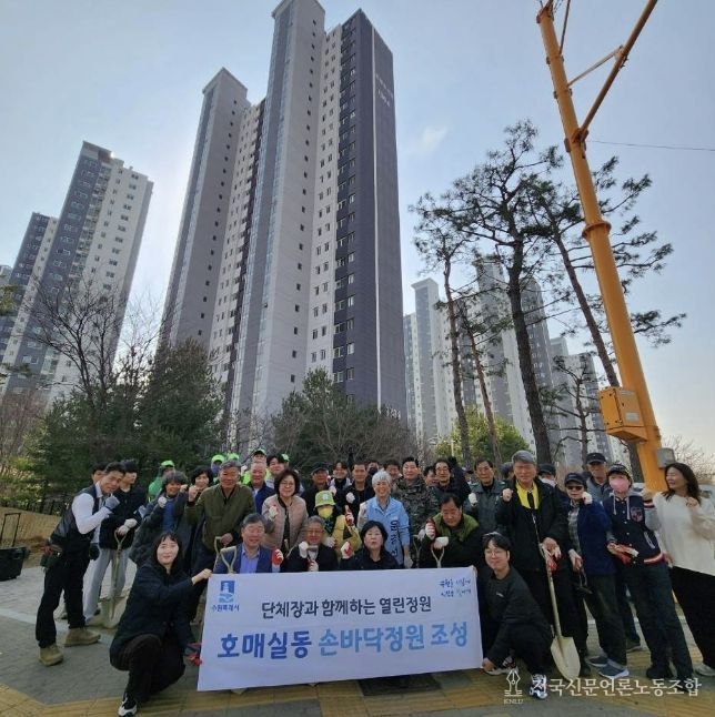 전국신문언론노동조합 김성길 기자 | 지난 24일, 수원시 권선구 호매실동은 쾌적한 마을 환경 조성과 도심 속 정원 문화 확산을 위해 아파트 단지 인근 유휴지에 ‘손바닥 정원’을 조성했다.