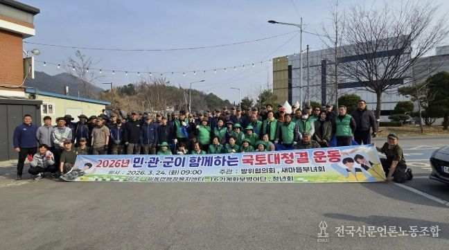 전국신문언론노동조합 김성길 기자 | 포천시 일동면 행정복지센터는 지난 24일 봄을 맞아 마을안길과 도로변 일원에서 민관군이 함께하는 국토대청소를 실시했다.
