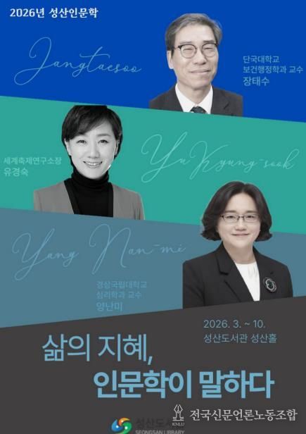 전국신문언론노동조합 강찬희 기자 | 창원특례시 성산도서관은 시민의 인문 정신 함양과 지역의 인문 진흥을 위해 '삶의 지혜, 인문학이 말하다'라는 주제로 2026년 성산인문학을 운영한다.