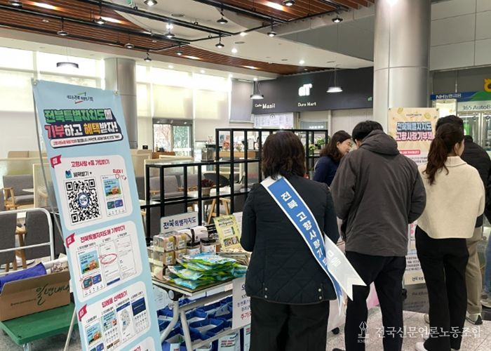 전국신문언론노동조합 강찬희 기자 | 전북특별자치도는 25일 전남 나주 aT 본사에서 직원과 방문객을 대상으로 고향사랑기부제 활성화를 위한 현장 홍보행사를 개최했다.