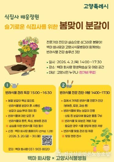 이 과정은 백마 화사랑과 고양시식물병원이 협업해 추진하는 융합형 평생학습 모델로, 반려식물을 매개로 한 생활밀착형 교육과 도시농업 활성화를 동시에 실현하고자 한다.