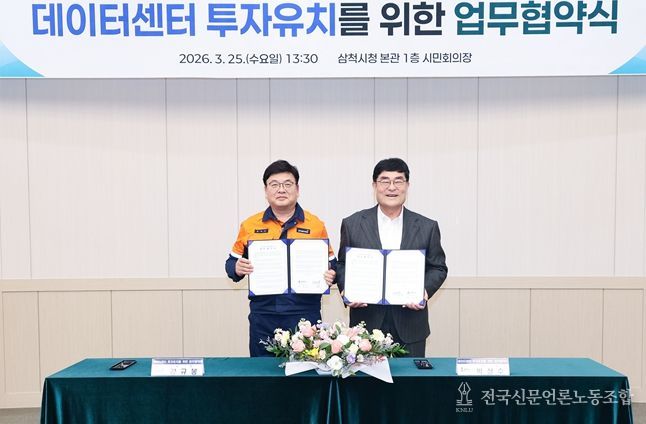 전국신문언론노동조합 강찬희 기자 | 삼척시와 삼척블루파워는 25일 삼척시청 시민회의장에서 “데이터센터 투자유치를 위한 업무협약(MOU)”을 체결했다.