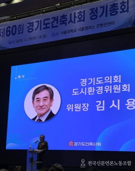 전국신문언론노동조합 강찬희 기자 | 경기도의회 도시환경위원회 김시용 위원장(국민의힘·김포3)은 25일 경기도건축사회 제60회 정기총회에 참석해 건축 분야 발전을 위해 헌신해 온 관계자들에게 감사와 격려의 뜻을 전했다.