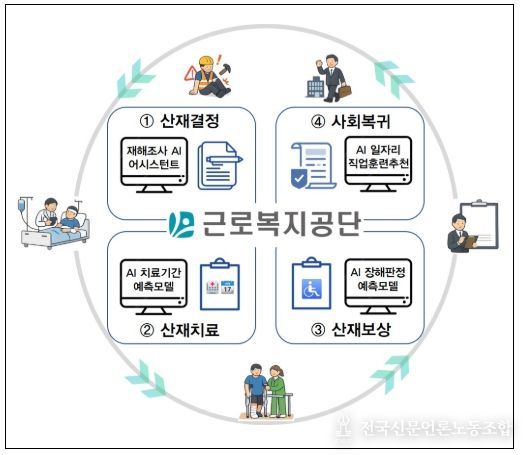 전국신문언론노동조합 강찬희 기자 | 근로복지공단(이사장 박종길)은 산재결정부터 치료, 보상, 사회복귀까지 산재보험 핵심 업무 전반에 인공지능(AI)을 접목한 ‘K-산재보험’ 모델을 구축한 결과 지난해 10월 재정경제부 주관 ‘대한민국 AI 10대 선도기관’으로 선정되는 등 AI 혁신 성과를 창출했다고 밝혔다.