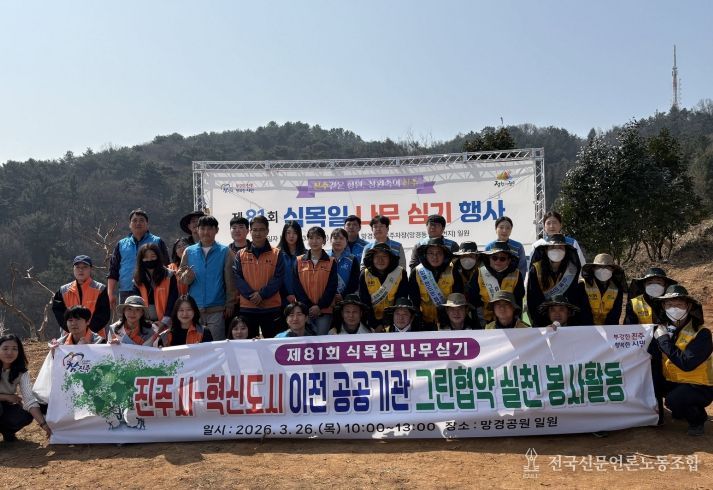 전국신문언론노동조합 강찬희 기자 | 진주시는 26일 망경공원 일원에서 혁신도시 이전 공공기관 임직원들과 함께 ‘2026년 제1회 그린 협약 실천 봉사활동’을 펼쳤다.