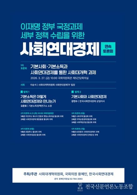 이번 연속토론회는 오는 7월까지 총 5회에 걸쳐 에너지전환, 통합돌봄, 사회주택, 사회연대금융 등 9개 분야를 다룰 예정이다. 도출된 정책과제는 각 중앙부처에 공식 전달되며, 부처별 이행계획 수립과 진행상황 설명 의무가 부과된다.
