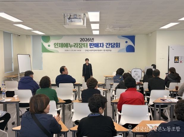 전국신문언론노동조합 강찬희 기자 | 인제군사회적경제지원센터가 지난 25일 ‘2026년 인제에누리장터 간담회’를 열고 올해 장터 운영계획과 주요 변경사항, 판매자 지원사항을 공유하며 참여업체와의 본격적인 소통에 나섰다.
