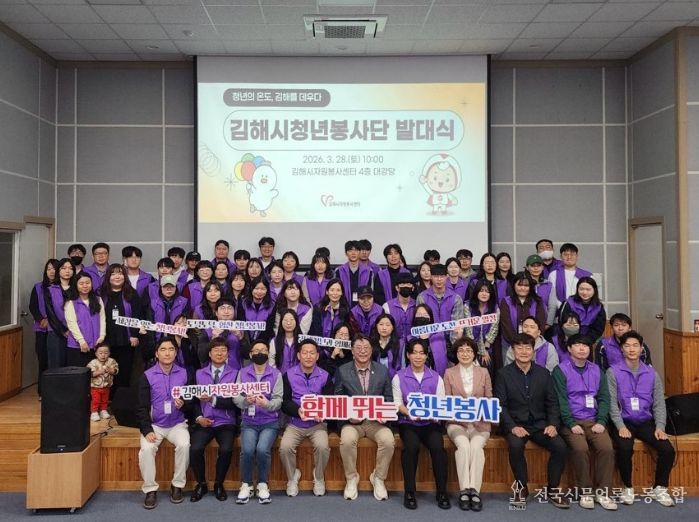 전국신문언론노동조합 강찬희 기자 | 김해시자원봉사센터는 지난 28일 지역 청년 140명이 참여한 가운데 ‘2026 김해시청년봉사단 발대식’을 개최했다고 30일 밝혔다.
