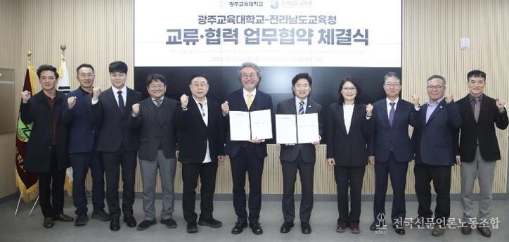전국신문언론노동조합 강찬희 기자 | 전라남도교육청과 광주교육대학교는 지난 25일 광주교대 미래교육혁신관에서 ‘교원 양성·임용 협력을 위한 업무협약’을 체결했다.