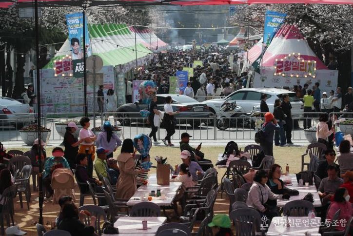 이곳에서는 만개한 벚꽃 아래에서 사진 촬영을 즐기는 사람들이 넘쳐나며 지역 경제 활성화에도 기여하고 있다.