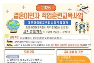 신청대상은 결혼이민자 및 중도입국자녀이며, 강사를 양성하는 과정인 만큼, 일정수준 이상의 한국어 구사 능력과 컴퓨터 활용능력을 갖춘 지원자를 선발할 예정이다. 접수는 오는 4월 15일까지 18명을 모집하며, 4월 28일 첫 사전교육을 시작으로 약 5개월 간의 교육 과정이 진행된다.