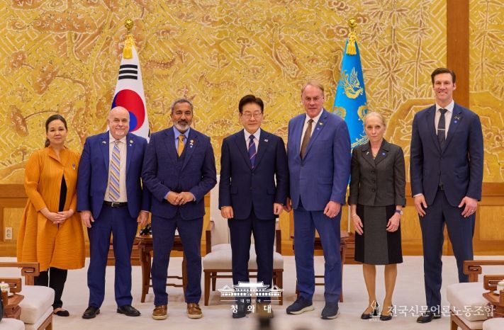 전국신문언론노동조합 강찬희 기자 | 이재명 대통령은 3월 31일 오후 청와대에서 아미 베라(Ami Bera) 하원 동아태소위원회 간사 등 공화·민주 양당 의원으로 구성된 미국 의회 코리아스터디그룹 대표단을 접견하고 최근 중동 전쟁, 한미관계, 한반도 문제 등에 대해 의견을 나눴다.