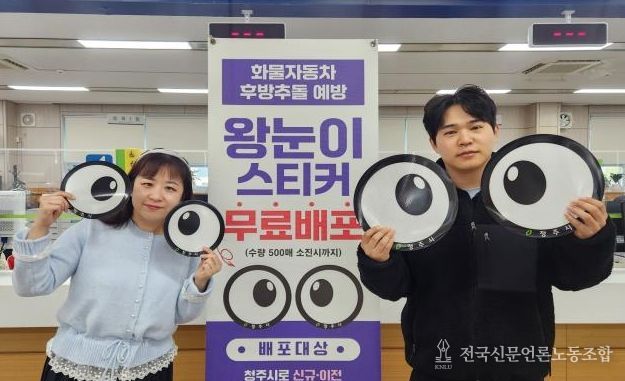 전국신문언론노동조합 김성길 기자 | 청주시 차량등록사업소가 화물자동차 교통사고 예방을 위해 ‘왕눈이 스티커’를 제작·배포하고 있다.
