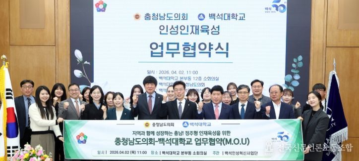 전국신문언론노동조합 강찬희 기자 | 충남도의회가 백석대학교와 손을 잡고 지역사회 미래를 책임질 ‘인성 인재’ 양성을 위한 제도적 기반 마련에 나선다.