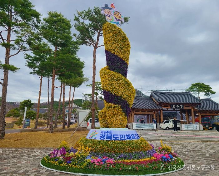 전국신문언론노동조합 강찬희 기자 | 안동시는 제64회 경북도민체육대회의 성공적인 개최를 기원하고, 도민 화합과 도전 정신의 의미를 상징하기 위해 ‘성화’를 모티브로 한 ‘횃불 꽃조형물’을 설치했다고 밝혔다.