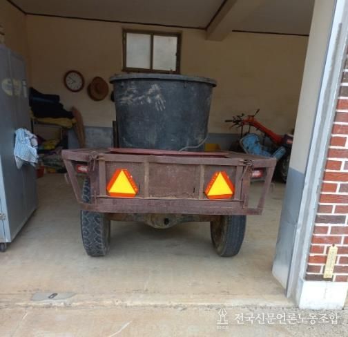 저속차량 표지판은 야간도로 주행 시 후방 차량과의 접촉 사고를 예방하는 역할을 하며, 조작주의 패널은 경운기의 조향클러치 취급 조작 방법을 운전자에게 상기시켜 안전사고를 예방한다.