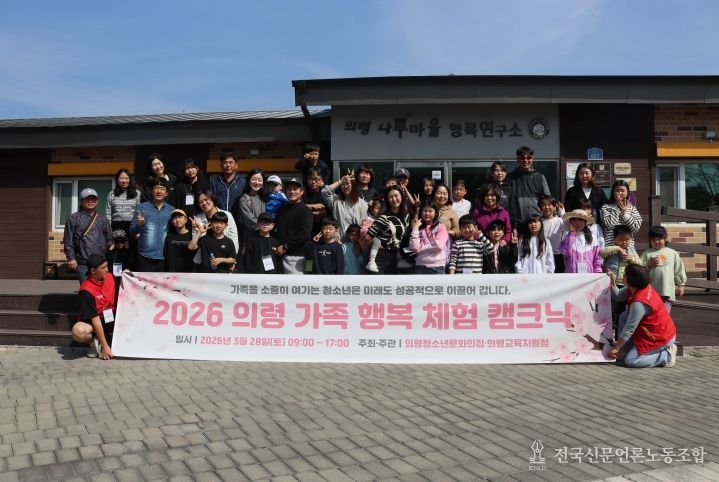 전국신문언론노동조합 강찬희 기자 | 의령청소년문화의집은 지난달 28일 관내 초·중학생 12가족(총 42명)을 대상으로 한 '2026 의령 가족 행복 체험 캠크닉(봄)'을 성황리에 마쳤다고 밝혔다.