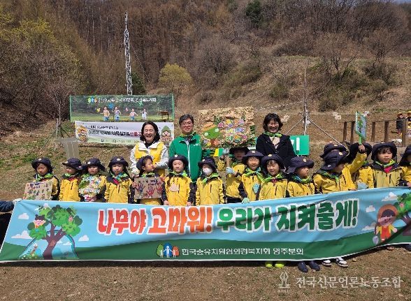 이날 현장에는 경북 영주시와 17개 유아교육기관 유아, 교사, 학부모 등 200여명이 참석해 낙엽송 100본을 정성껏 식재했다. 같은 시간 전국 1,232개 유아교육기관에서도 약 10만 명의 유아들이 나무 심기에 동참했다.