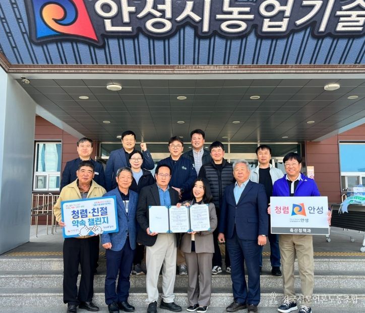전국신문언론노동조합 김성길 기자 | 안성시 농업기술센터 축산정책과가 지역 축산단체들과 손잡고 투명하고 공정한 행정 실현을 위한 '청렴 행보'에 본격적으로 나섰다. 시는 지난 4월 2일, 안성시 축산단체협의회와 함께 청렴 협약식을 개최하고 신뢰받는 축산행정 구현을 위한 협력 기반을 강화했다고 밝혔다.