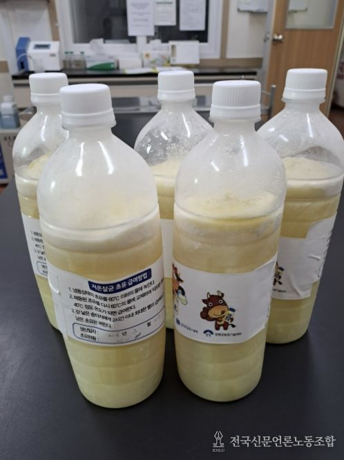초유은행은 수거된 초유의 안전성을 확보하기 위해 전문적인 정제 과정을 거친다. 수거 즉시 면역글로불린(IgG) 농도를 측정해 양질의 초유만을 선별하고, 질병 감염 예방을 위해 저온살균기에서 60℃의 온도로 60분간 살균을 실시한다. 이후 700mL 단위로 위생 공급병에 소분·포장해 영하 20℃ 이하에서 급속 냉동 보관한 뒤, 필요한 농가에 적기에 공급한다.