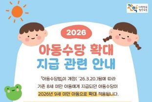 구 관계자는 “이번 아동수당 지급 연령 확대는 영유아기에 집중됐던 지원이 학령기까지 확장되는 중요한 전환점”이라며, “자치구 차원에서도 아동 양육 가정의 경제적 부담을 실질적으로 덜어줄 수 있도록 행정적 지원에 최선을 다하겠다”라고 말했다.