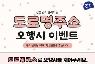 참여 방법은 진천군청 공식 사회관계망서비스와 누리집에 게시된 홍보 포스터의 정보무늬 코드를 통해 온라인 참여 페이지에 접속한 뒤, ‘도로명주소’를 주제로 한 오행시를 작성해 제출하면 된다.