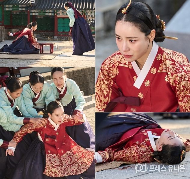 사약이 담긴 그릇을 패대기치며 울분을 토한 단심은 네 명의 궁녀가 달려들어도 쉽게 제압하지 못할 정도. 생의 마지막 순간을 예감한 처절함이 ‘강단심’이라는 인물에 대한 궁금증을 높이는 한편, 살아남기 위해 독기를 풀충전해야 했던 ‘조선악녀’ 강단심이 2026년 대한민국의 무명배우 신서리의 몸에서 눈을 뜬 이후 어떤 파란을 일으킬지 기대감을 치솟게 한다.