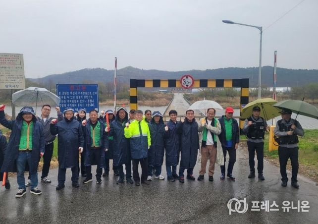 프레스유니온 김성길 기자 | 평택시 진위면 자율방재단은 지난 9일 방재단원과 공무원 등 30여 명이 참여한 가운데 진위천 세월교에서 집중호우 대비 실제 상황을 가상한 교량 통제 모의훈련을 실시했다.