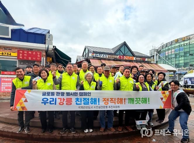 프레스유니온 강찬희 기자 | 국제관광도시 시민실천운동 추진위원회는 10일 주문진 일원에서 관광업 종사자를 대상으로 ‘친절·정직·깨끗한 강릉 만들기’ 시민 캠페인을 전개했다.