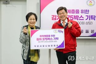 프레스유니온 강찬희 기자 | 서울 동대문구는 9일 작은사랑나눔운동본부(대표 이남숙)로부터 저소득 가정을 위한 김치 2㎏ 375박스(940만 원 상당)를 전달받았다고 밝혔다.
