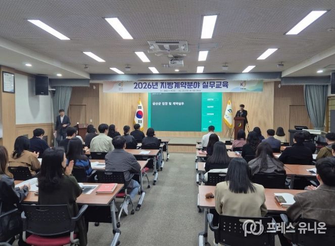 프레스유니온 강찬희 기자 | 금산군은 지난 10일 군청 다용도회의실에서 공무원 60여 명을 대상으로 지방계약분야 실무교육을 시행했다.