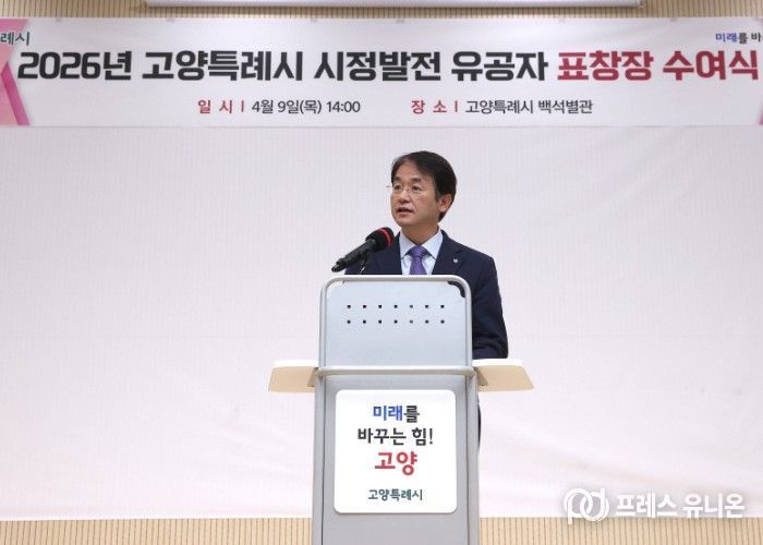 프레스유니온 김성길 기자 | 고양특례시는 지난 9일 고양시 백석별관에서 ‘2026년 고양특례시 시정발전 유공자 표창장 수여식’을 개최하고, 지역 농업 발전에 기여한 후계농업경영인에 표창을 수여했다.