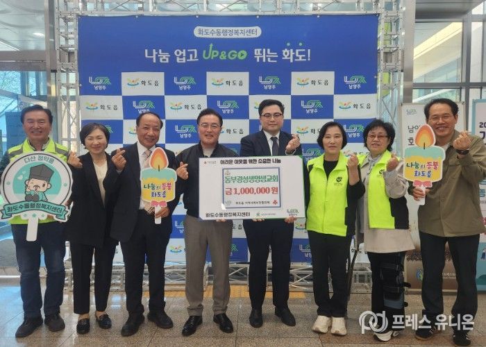 프레스유니온 김성길 기자 | 남양주시는 14일 동부광성생명샘교회가 화도읍 지역사회보장협의체에 취약계층 지원을 위한 후원금 100만 원을 전달했다고 밝혔다.