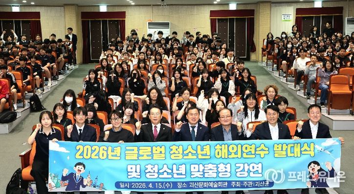 프레스유니온 김성길 기자 | 충북 괴산군은 15일 괴산문화예술회관에서 괴산고등학교 및 관내 중학교 학생들을 대상으로 ‘글로벌 청소년 해외연수 발대식’을 개최했다고 밝혔다.