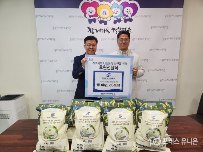 프레스유니온 김성길 기자 | 지구촌사회복지재단(대표이사 이정우)에서 운영하는 용인시수지노인복지관(관장 김전호)은 4월 14일 모두탑365정형외과와 함께 어르신들을 위한 쌀 후원 전달식을 진행했다.
