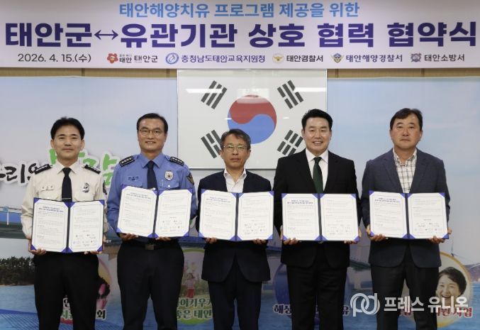 프레스유니온 강찬희 기자 | 태안군이 지난 15일 군청 소회의실에서 태안해양치유센터와 관내 유관기관 간 공직자 심신 치유 및 복지 증진을 위한 업무협약을 체결하고 기관별 맞춤형 해양치유 프로그램 운영 기반을 마련했다.