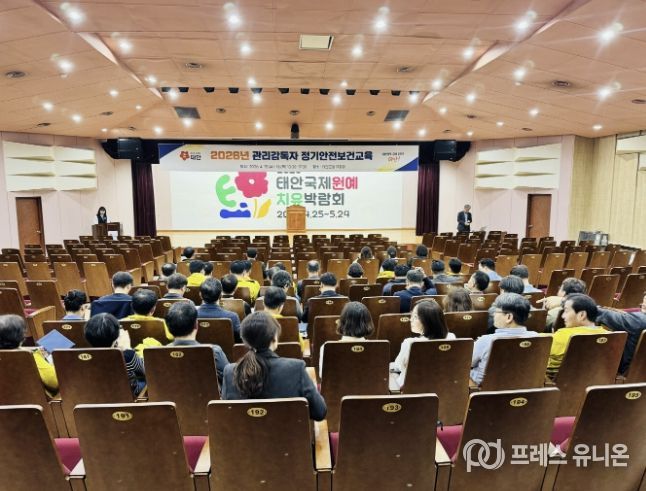 프레스유니온 강찬희 기자 | 태안군이 지난 15일부터 이틀간 군청 대강당에서 부서장 등 관리감독자 40여 명이 참석한 가운데 2026년 관리감독자 정기 안전보건교육 집체교육을 실시했다.