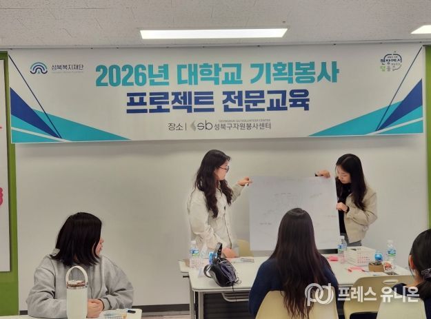 프레스유니온 강찬희 기자 | 성북구 성북복지재단 자원봉사센터가 지난 12일 관내 대학생들이 참여한 가운데 ‘2026 대학교 기획봉사 프로젝트’ 사업 설명회와 기획 전문교육을 진행했다.