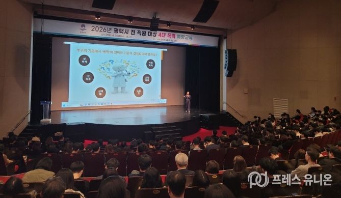 프레스유니온 김성길 기자 | 평택시는 지난 14일과 15일 이틀간 평택시 남부문화예술회관에서 6급 이하 전 직원을 대상으로 4대 폭력 예방 교육을 진행했다고 밝혔다.