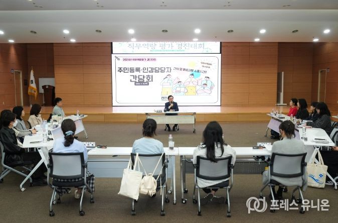 프레스유니온 강찬희 기자 | 천안시는 16일 시청 대회의실에서 주민등록 및 인감 업무 담당 공무원을 대상으로 ‘직무역량 평가 경진대회’를 개최했다.