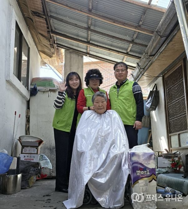 프레스유니온 강찬희 기자 | 예산군 대흥면지역사회보장협의체는 지난 16일 관내 거동이 불편한 어르신 가정을 직접 찾아 찾아가는 이미용 봉사를 펼쳤다.